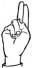 На ћирилици написано МЛАДЕН ГРУБНИЋ састоји се из 13 слова [?]. Исписано ћириличном једноручном азбуком за глувонеме: